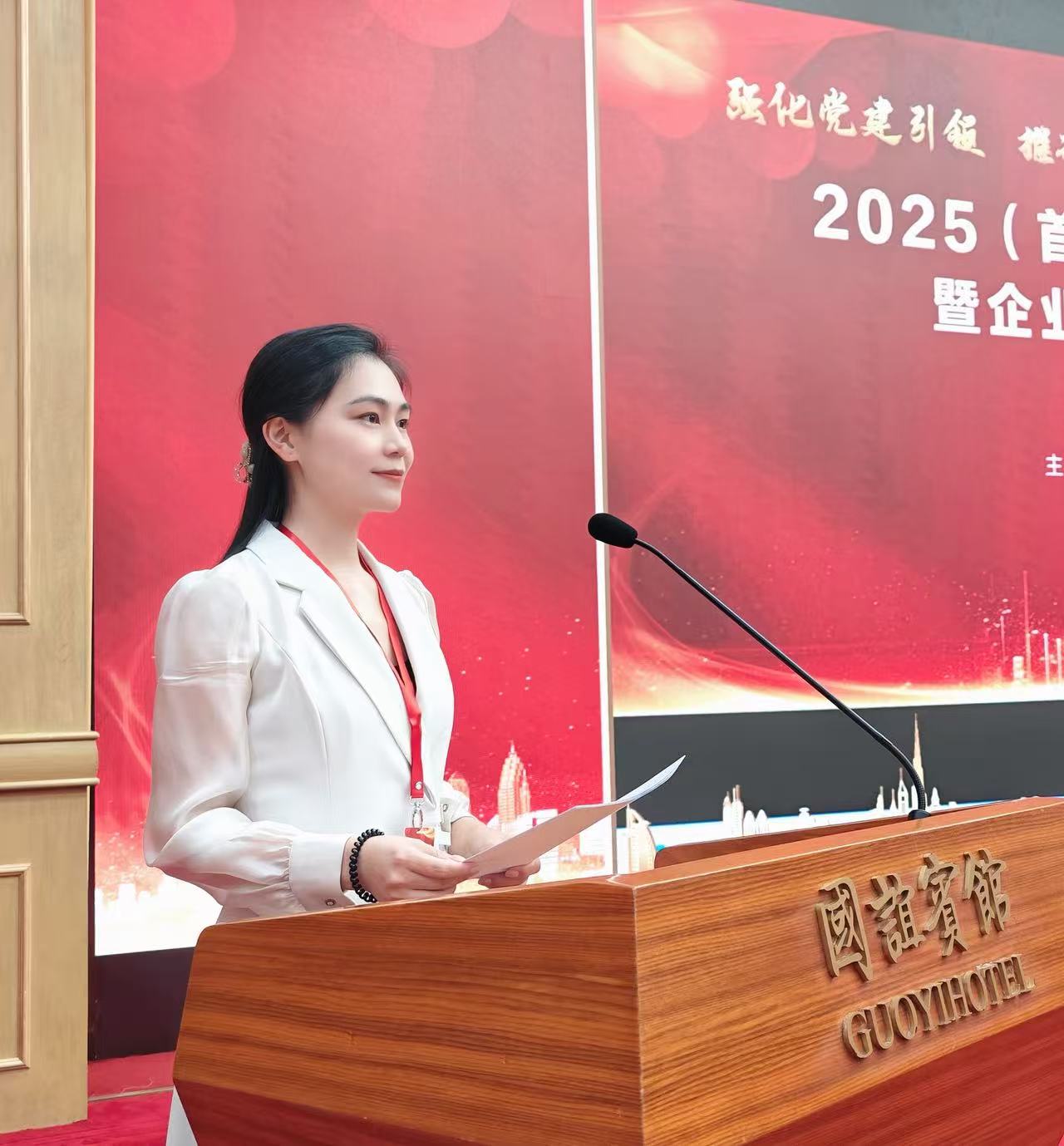 大会上,罗静怡同志代表国信监理集团做典型交流发言。她在交流发言中系统阐述了国信监理集团党建工作的基本建设情况,深入剖析了案例提出的时代背景与现实意义,详细介绍了案例实施过程中的关键举措以及取得的显著成效,其分享的内容得到了现场与会领导嘉宾的广泛关注与高度认可。